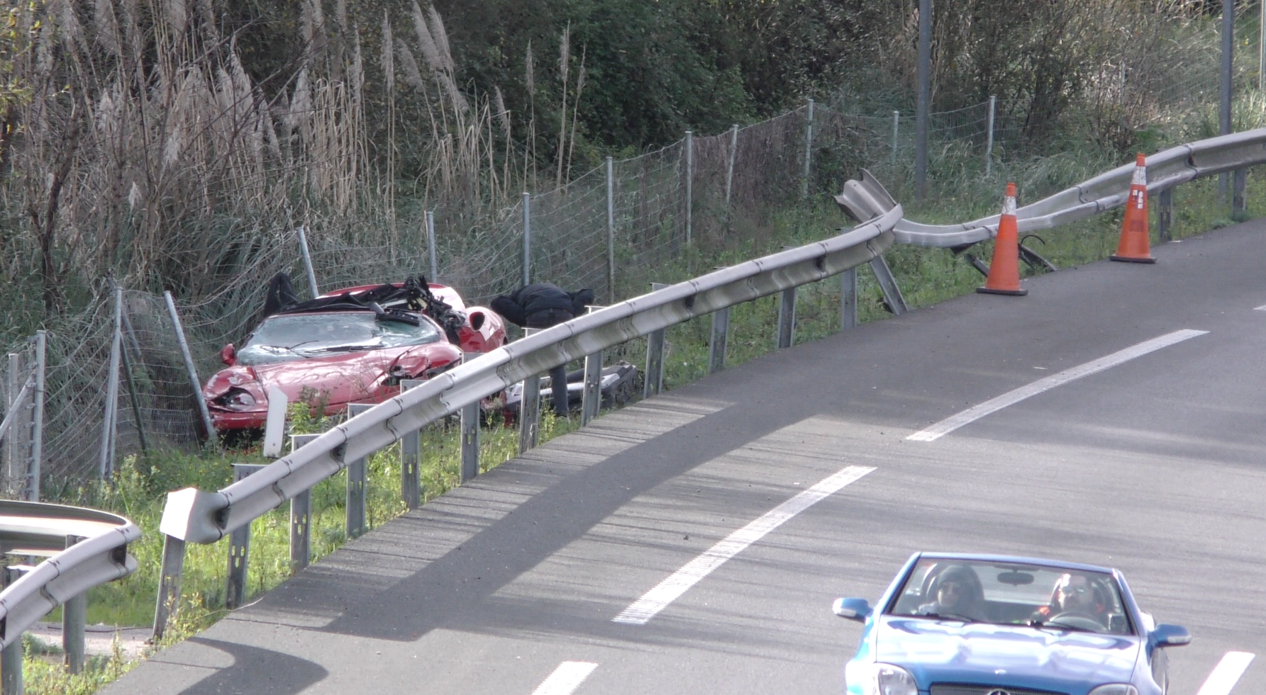 El conductor de un vehículo de gran cilindrada, un Ferrari, tuvo que ser evacuado con pronóstico reservado tras sufrir a última hora de la tarde de ayer un accidente en la A-67, a la altura de Gornazo (Miengo).