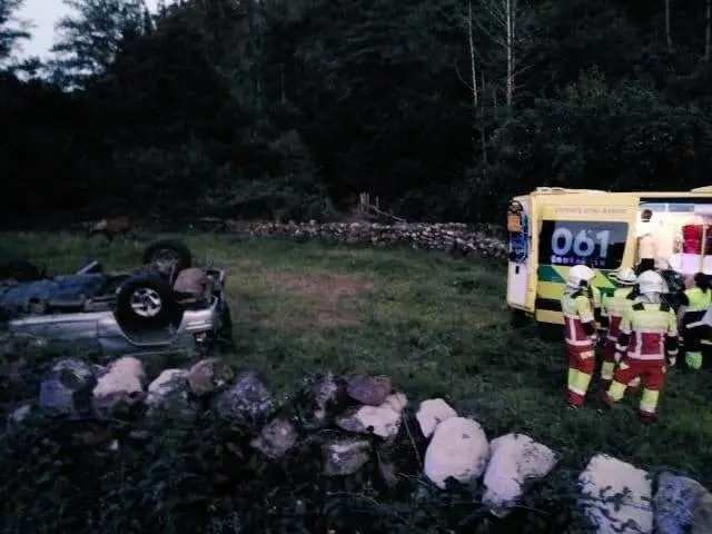 Una persona ha resultado herida después de que un vehículo se saliese de la vía y volcara en el kilómetro 10,5 de la carretera autonómica CA-182, a la altura de Cabuérniga.