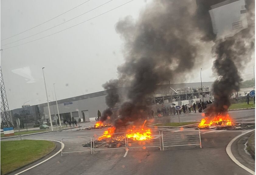 Hogueras y barricadas en una jornada de huelga del metal "sin incidentes" que cierra empresas "grandes y pequeñas"