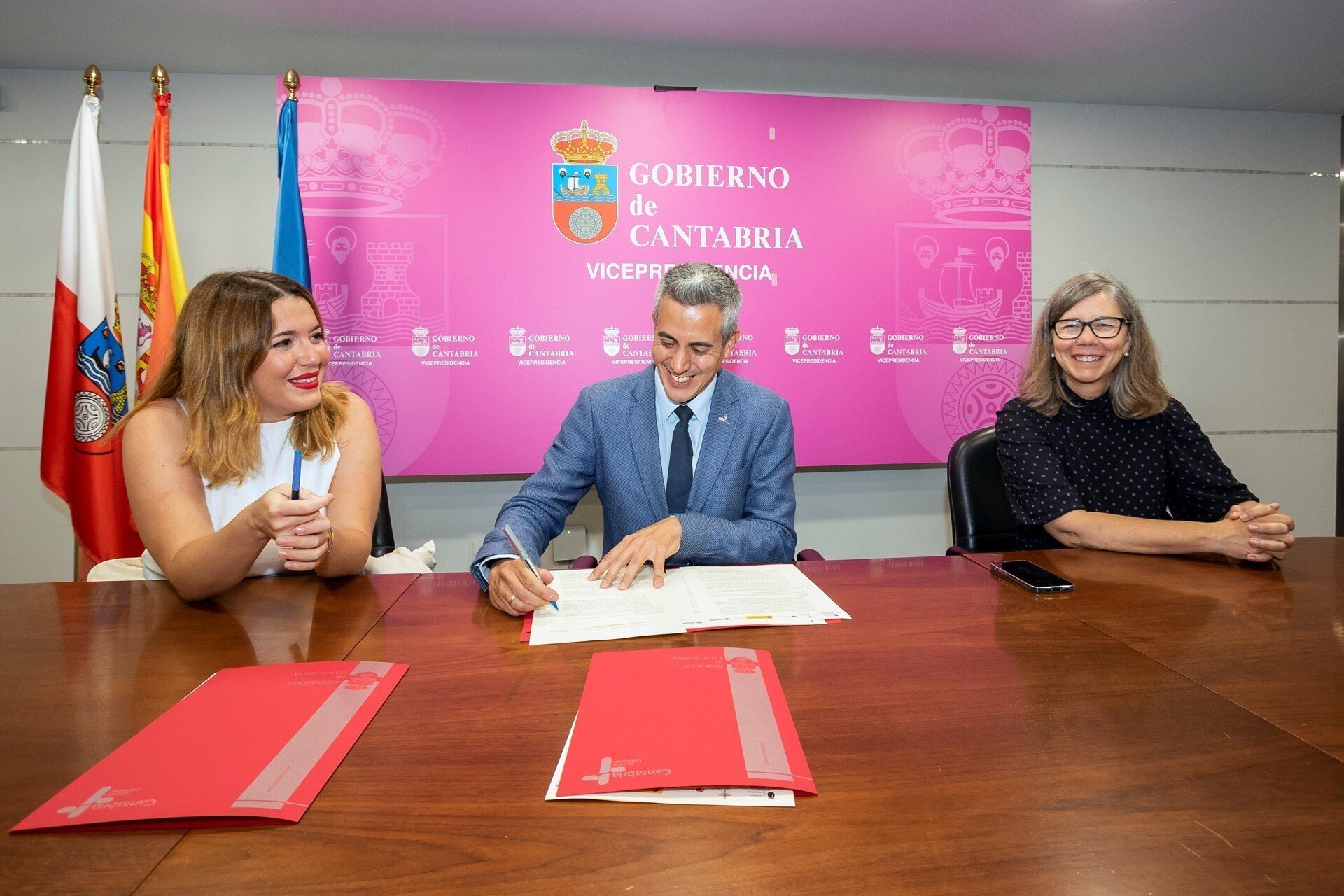 La secretaria de Estado de Igualdad, Ángela Rodríguez, y el vicepresidente cántabro y consejero del ramo, Pablo Zuloaga, han firmado este martes el acuerdo de colaboración para agilizar e impulsar en la región la ejecución del Plan Corresponsables, dirigido a facilitar la conciliación familiar y poner en marcha un sistema de cuidados públicos de calidad que incida en el reparto de tareas en los hogares y contribuya a erradicar las desigualdades de género.