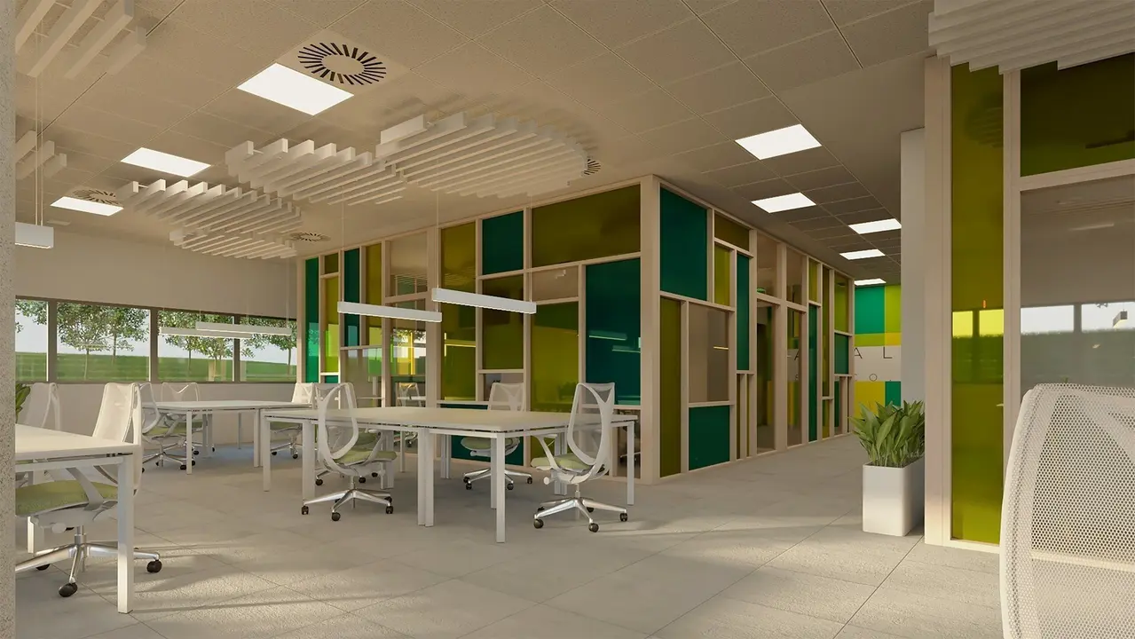 También habrá tres cabinas de video llamadas individuales, un espacio de reprografía y el office/comedor en un espacio independiente del resto de la zona de trabajo común.