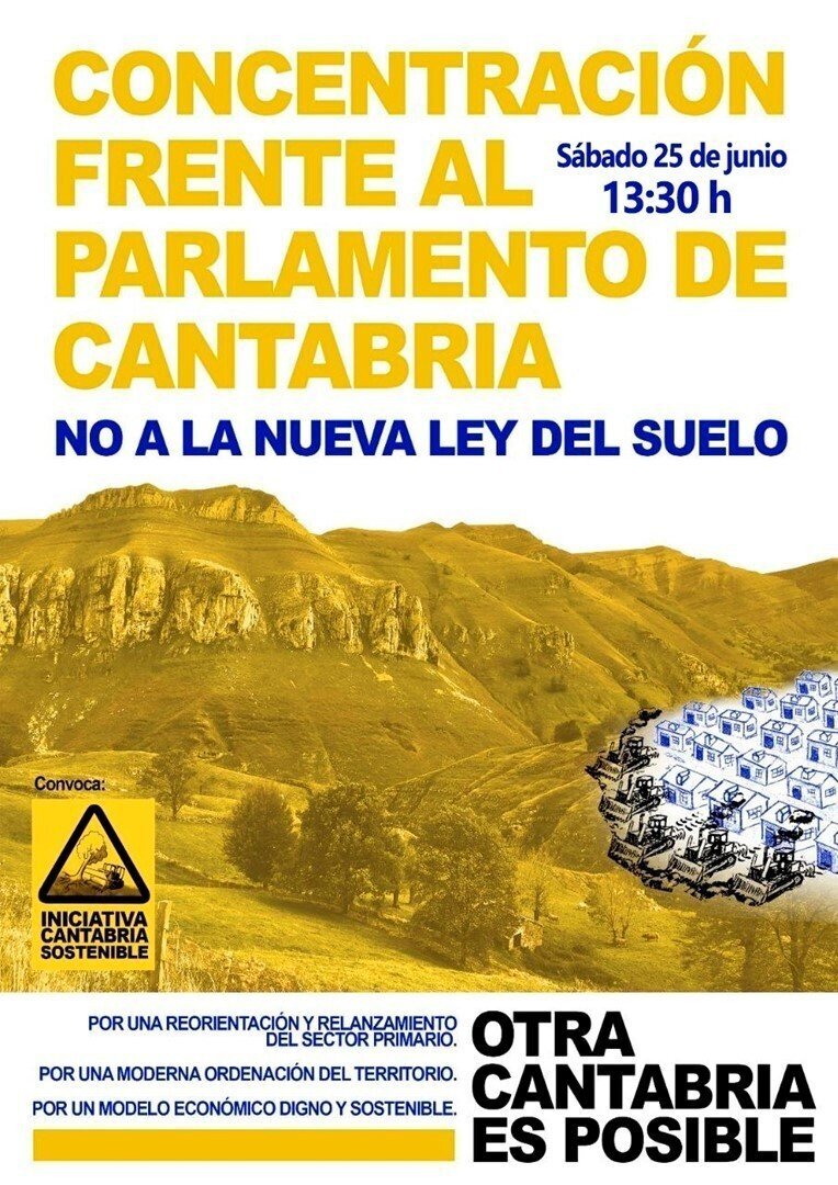 Bajo los lema 'Otra Cantabria es posible' y 'Defendamos el suelo fértil de Cantabria', los colectivos han denunciado que, transcurridos 40 años de la constitución del Parlamento regional, con el actual proyecto de nueva Ley del Suelo, los diputados "culminan un largo proceso de progresiva degradación territorial y continuo declive económico" de la comunidad autónoma.