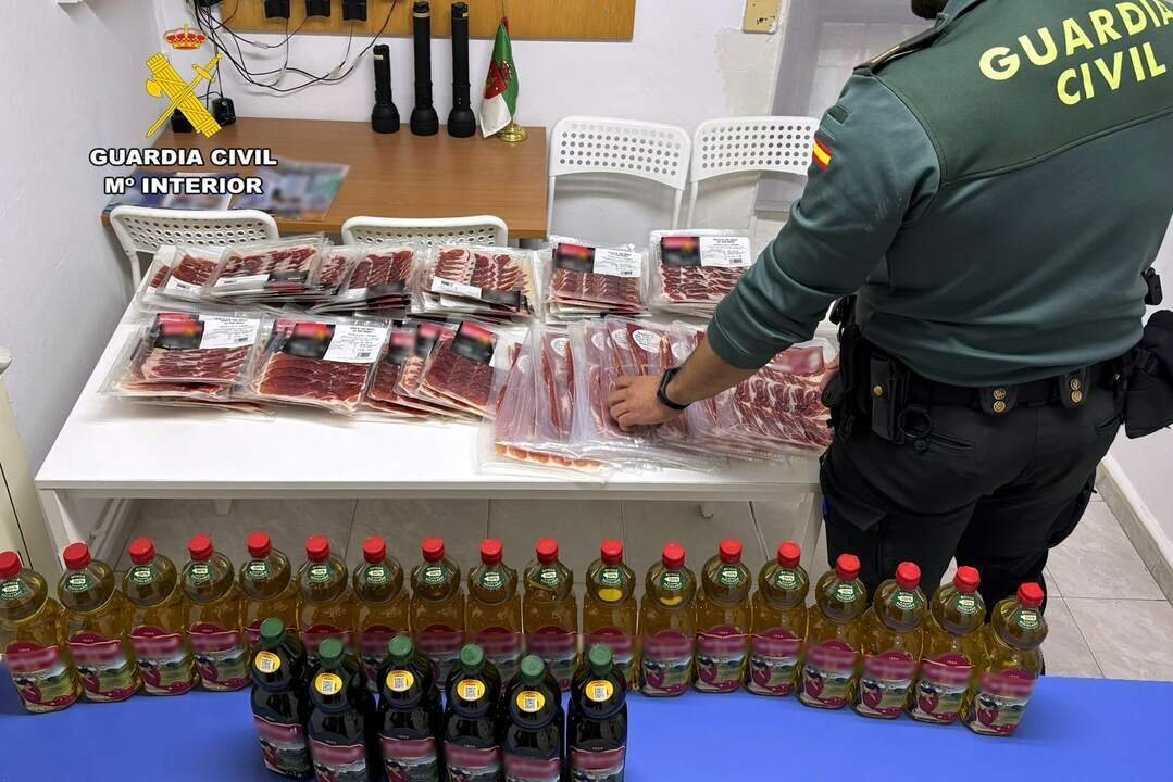 Los guardias pararon junto al turismo, identificaron a su ocupante, una mujer, y encontraron en el maletero 24 botellas de aceite de oliva y 80 sobres de jamón ibérico. La mujer no supo explicar la procedencia de los productos.