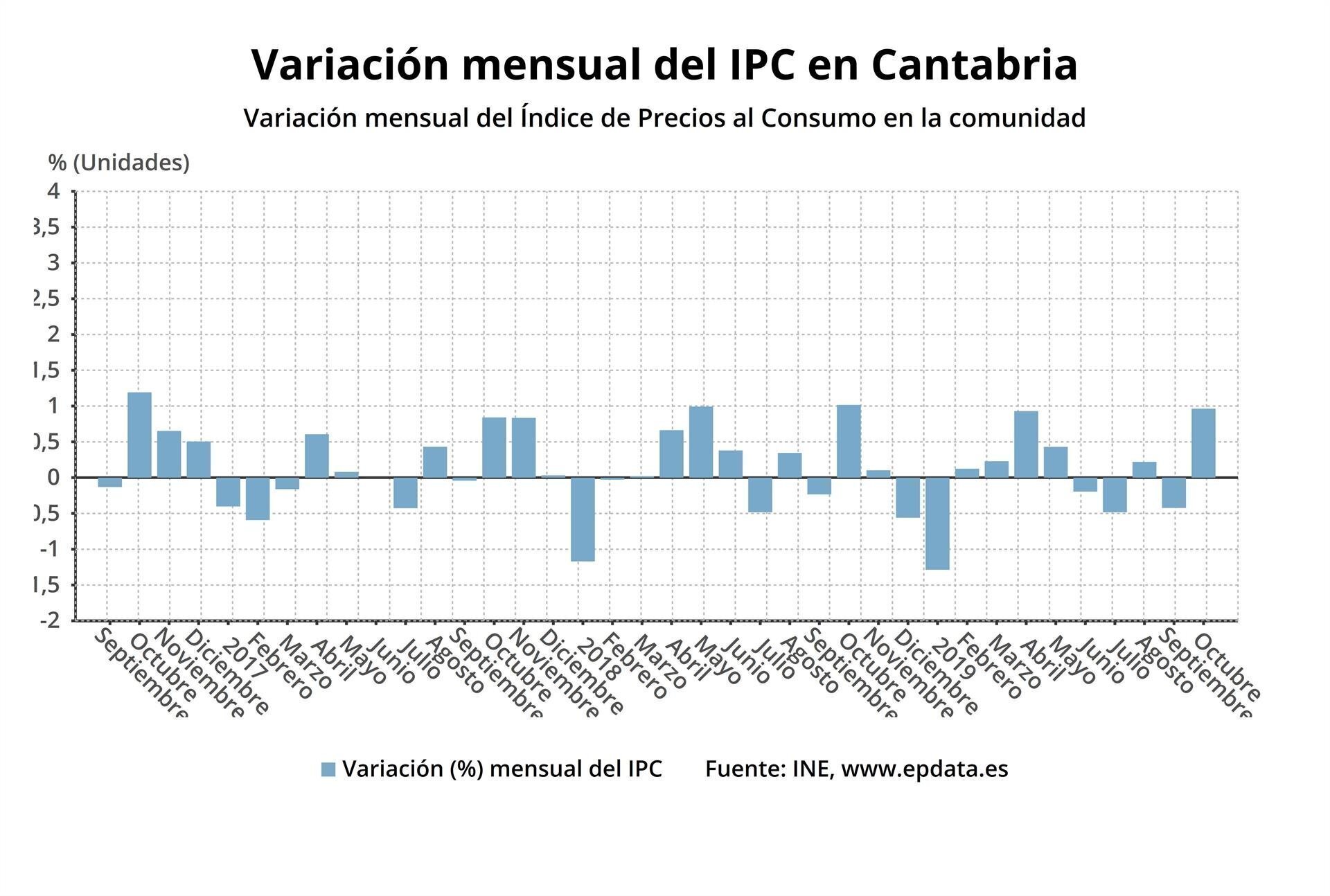 El IPC permanece estancado en octubre en Cantabria, pero sube un 1% respecto a septiembre