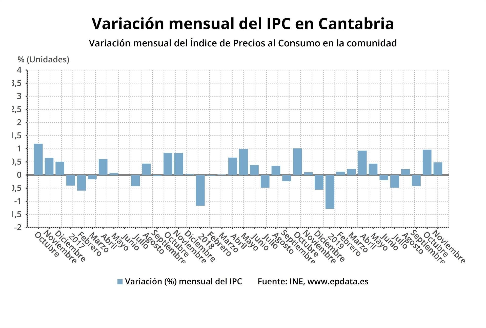 El IPC sube un 0,4% en noviembre Cantabria y medio punto respecto a octubre
