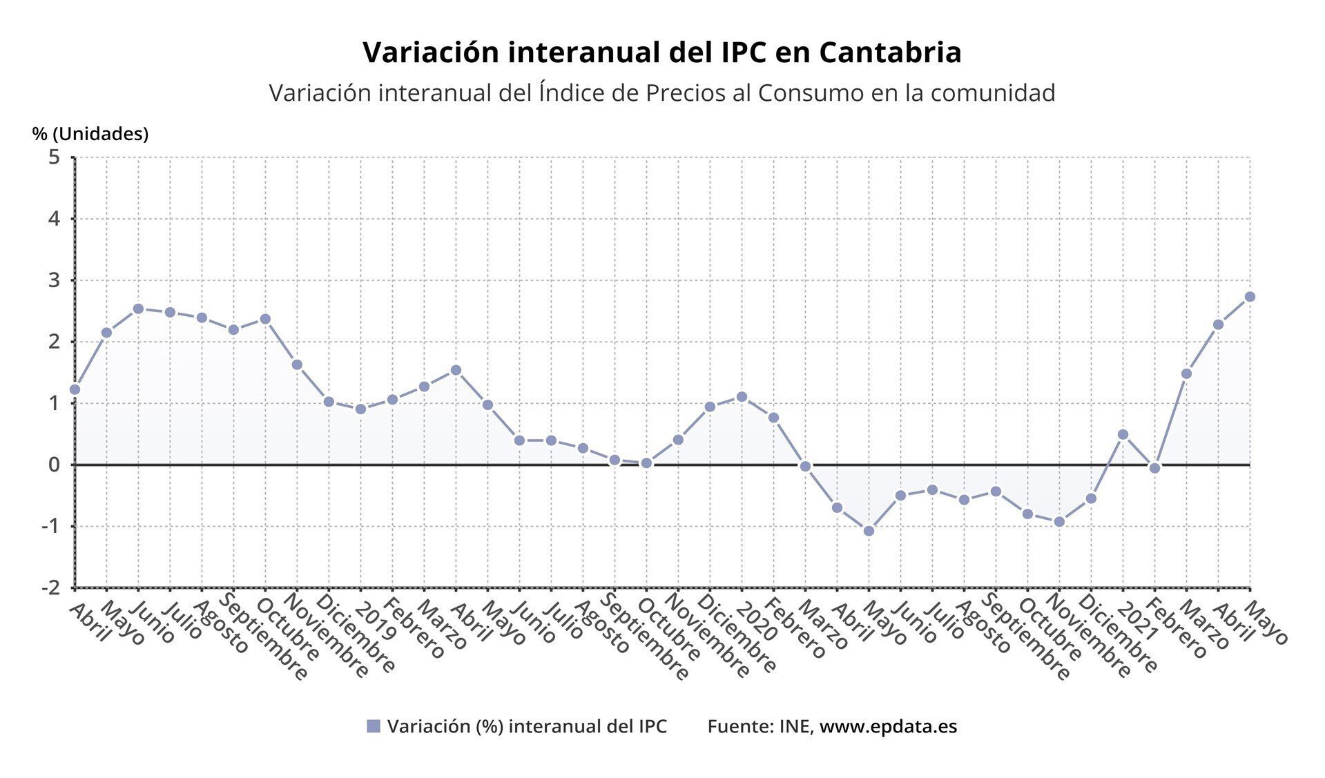 El IPC sube un 2,7% en Cantabria en mayo y medio punto respecto a abril