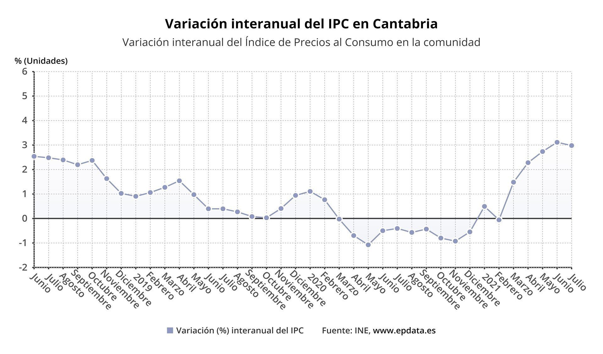 El Índice de Precios de Consumo (IPC) en Cantabria subió un 3% en julio en comparación con el mismo mes del año anterior, en línea con el conjunto nacional (2,9%), pero bajó un 0,5% respecto al pasado mes de junio, tres décimas menos que la media (-0,8%), según ha informado este viernes el Instituto Nacional de Estadística (INE).