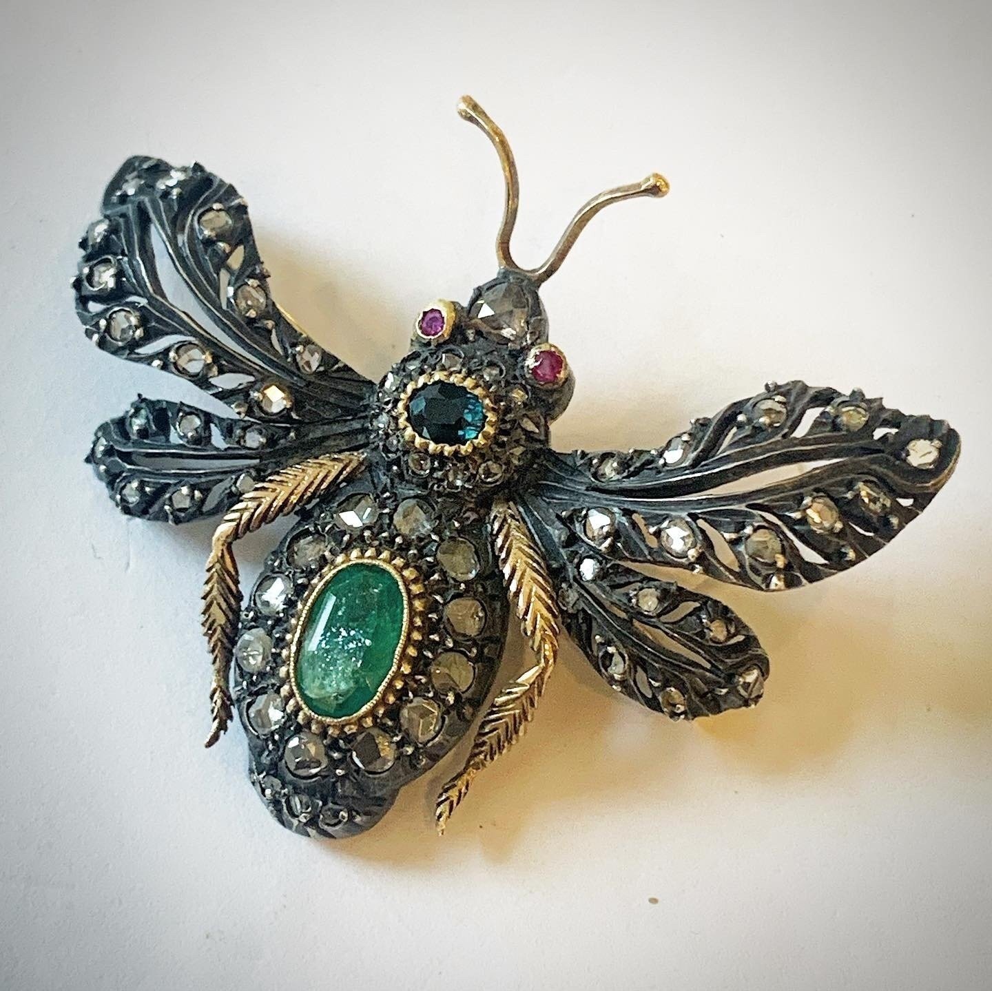 En esta convocatoria expondrá una cuidada selección de joyas como un broche con forma de lazo realizado en oro con un cuarzo citrino central -época Chevalier, 1950-; un collar tubo de gas realizado en oro, de los años 70; o un broche en forma de mariposa realizado en oro y plata con diamantes, zafiros y esmeraldas (Francia, s. XIX).