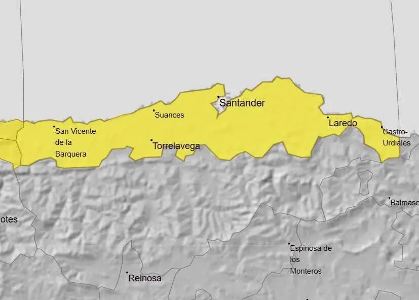 El litoral de Cantabria está esta mañana en aviso amarillo (peligro bajo) por lluvia ya que se prevén acumulaciones de precipitación de hasta 20 litros por metro cuadrado en una hora.
