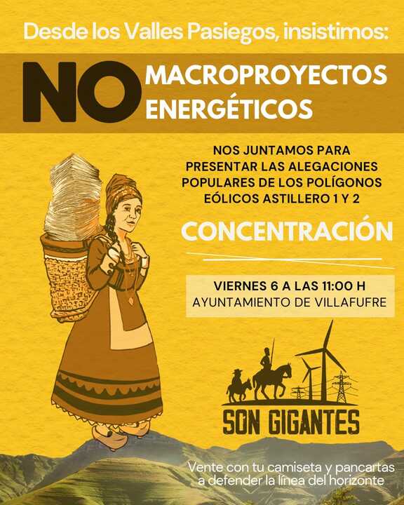En un comunicado, Son Gigantes ha señalado que, desde julio de 2025, tras la salida a información pública del polígono eólico Benavieja, "los proyectos se han sucedido bajo distintos nombres y empresas, generando una tramitación fragmentada cuyos impactos se acumulan sobre las mismas zonas". La plataforma, integrada por vecindad y colectivos de distintos valles, ha coordinado desde entonces un trabajo continuado de información técnica, acompañamiento vecinal y elaboración de alegaciones.