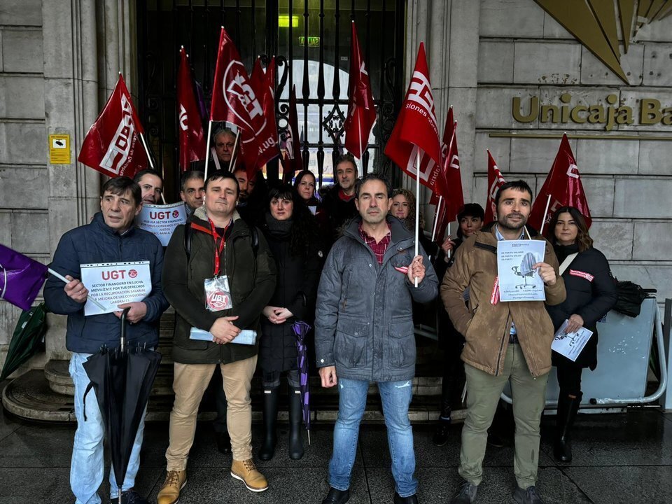 Un 80% de la plantilla de las entidades bancarias y el 84% de la de Unicaja ha secundado este lunes en Cantabria los paros de dos horas (de 8 a 10) convocados por los sindicatos UGT, CCOO y FINE en todo el sector financiero español por el nuevo convenio colectivo estatal del sector.