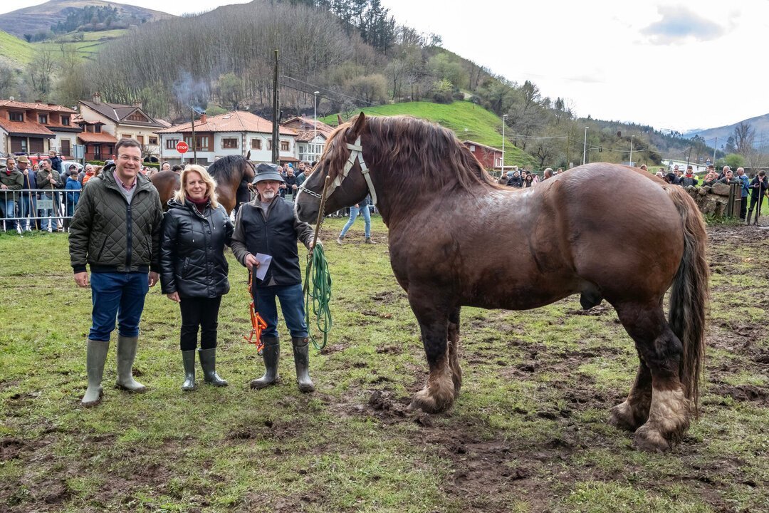 Susinos ha mostrado su apoyo a esta raza equina, una de las dos autóctonas que hay en Cantabria junto con la monchina en el transcurso del recorrido que ha realizado por la feria.