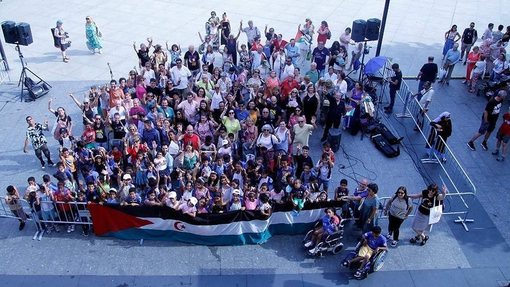 La concentración, en el marco del programa Vacaciones en Paz 2024, ha contado con la asistencia de los menores saharauis participantes y sus familias de acogida, además de numerosas personas que se han sumado a la misma.