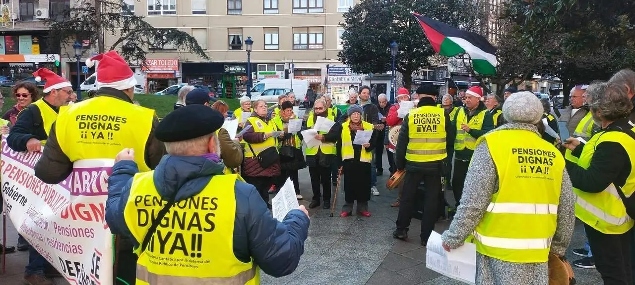 Más de medio centenar de pensionistas han participado este sábado en la manifestación convocada por la Coordinadora Cántabra de Pensionistas en la que han cantado sus "verdades" a los gobiernos de Cantabria (PP) y España (PSOE-SUMAR) en forma de villancicos transformados.