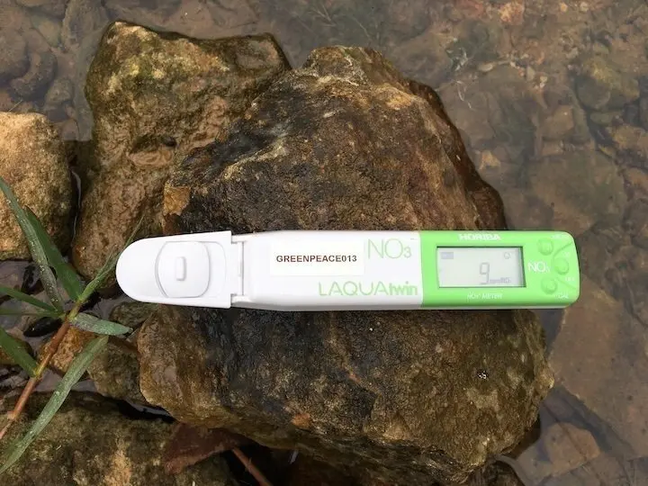 Uno de los principales objetivos es vigilar el estado de las aguas y denunciar la contaminación por nitratos de este recurso, vital y cada vez más escaso y mal gestionado. Para ello, Greenpeace ha formado a las personas y ha cedido un sencillo dispositivo que mide la concentración de nitratos en el agua.