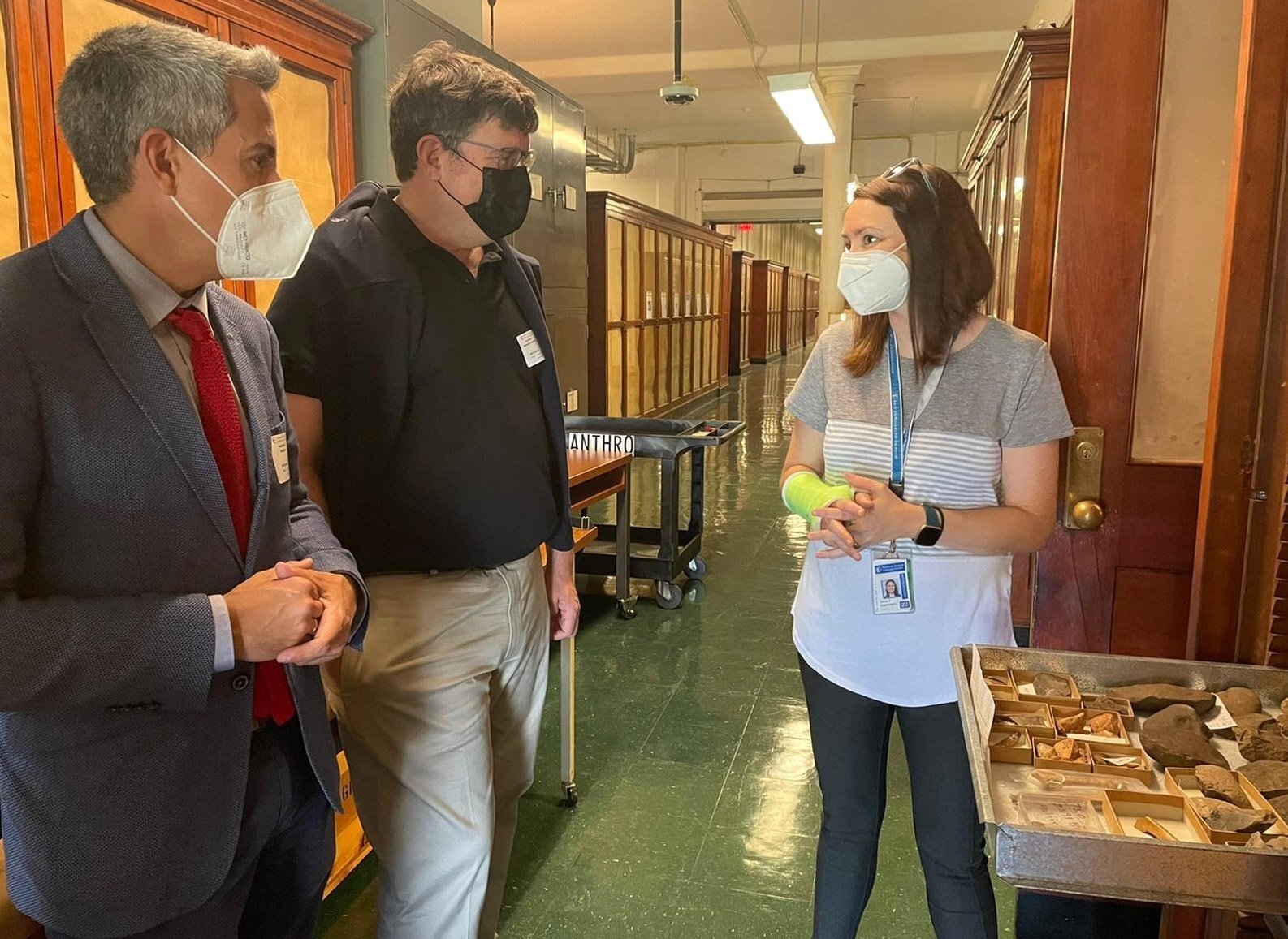 En la visita, el vicepresidente ha estado acompañado por la conservadora jefe de las colecciones de antropología biológica del Museo de Nueva York, Ashley Hammond; los investigadores del área de antropología biológica Giselle García y Sergio Almecija; el director ejecutivo de World Monuments Fund en España, Pablo Longoria; y la directora general de Acción Cultural, Gema Agudo.