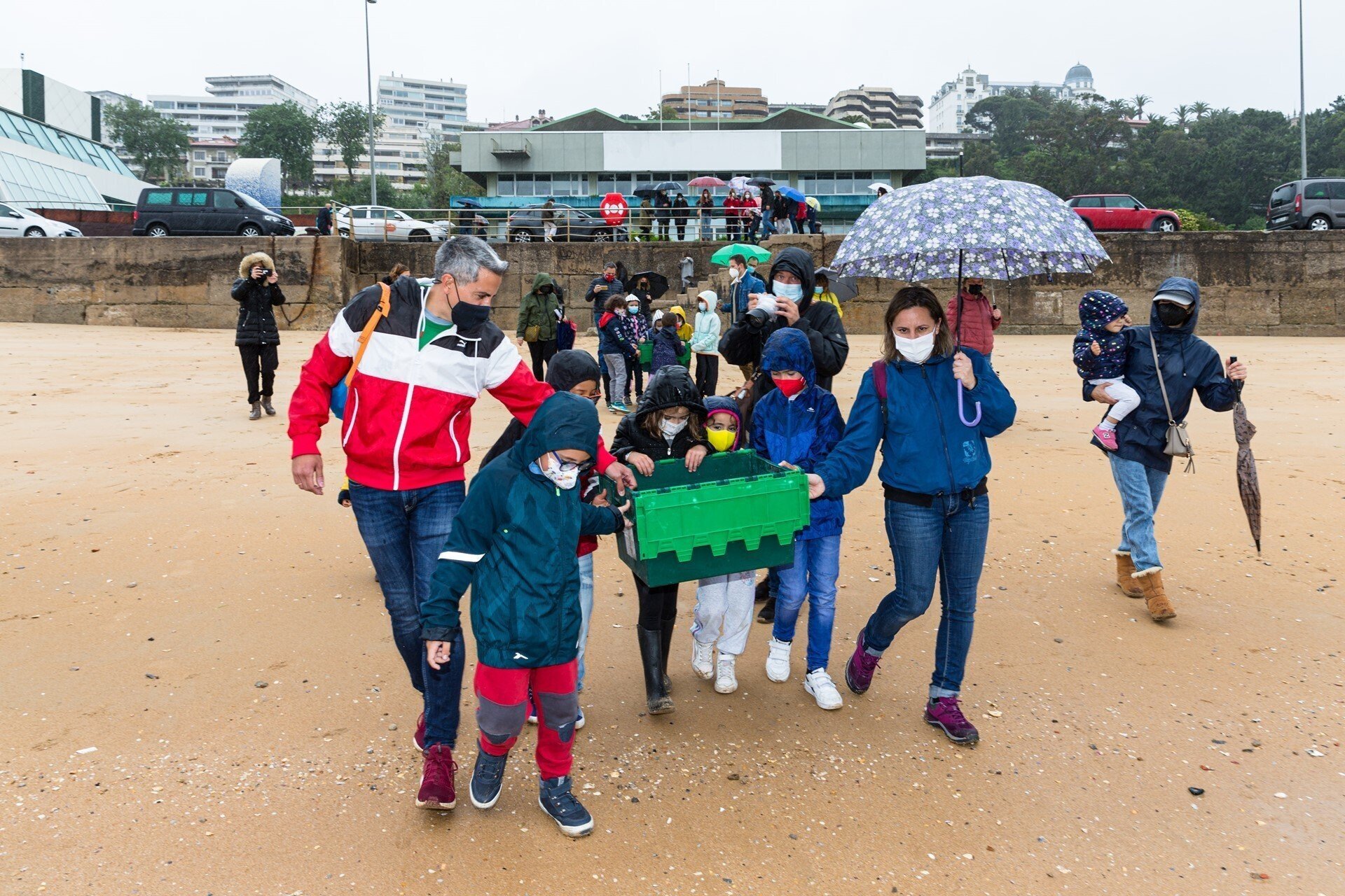 Esta suelta se ha incluido en el programa de actividades de educación ambiental del MMC dirigido a niños, que son quienes han protagonizado esta reintegración al mar de los ejemplares portando las cajas hasta la orilla.