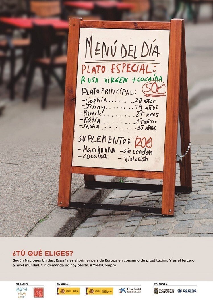 En concreto, el cartel dice 'En Cantabria las mujeres están en venta, son como platos de un menú del día. Una colombiana, una paraguaya, una rumana. Tú eliges qué plato quieres. Tú eliges a quién quieres comprar hoy'.