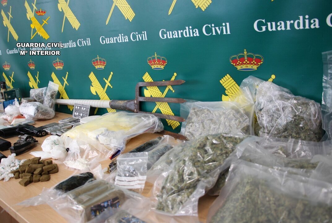 En los registros se han encontrado armas blancas y un revolver, tres pistolas simuladas, así como todo lo necesario para la distribución de la droga y posterior venta al menudeo. También se han intervenido diferentes equipos tecnológicos y vehículos.