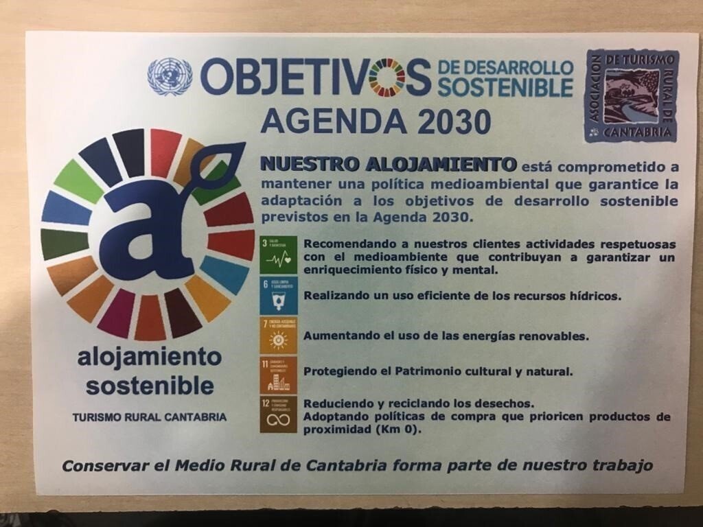 La Asociación de Turismo Rural de Cantabria lanza entre susasociados un proyecto que impulsa la adaptación de los alojamientos rurales a las medidas medioambientales impulsadas por la Agenda 2030 de Naciones Unidas y los Objetivos de Desarrollo Sostenible y, para animarles, ha creado un sello distintivo para los que se adhieran.