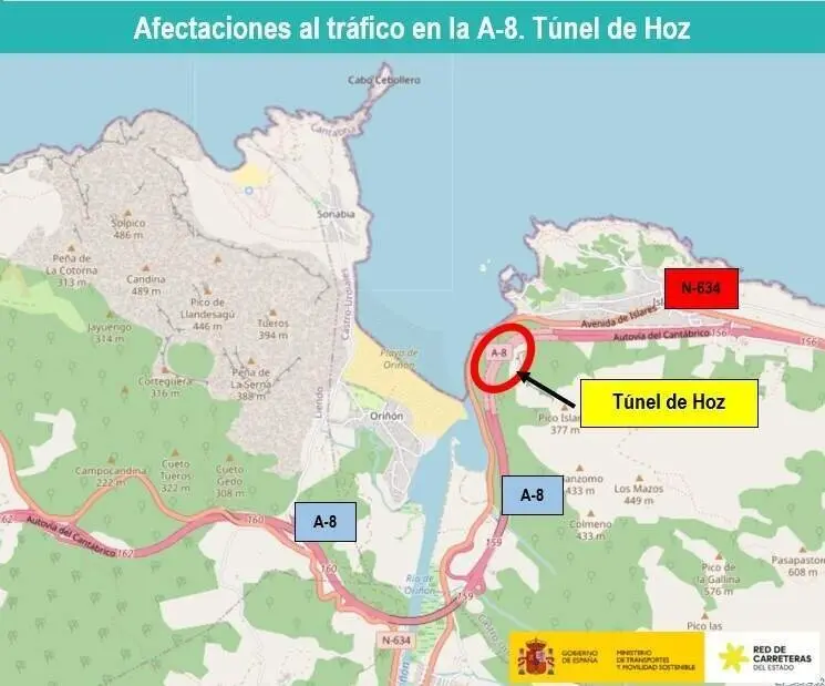 Las afecciones al tráfico se producirán entre los kilómetros 157 y 159 de la A-8 por los trabajos de mejora del túnel de Hoz, concretamente para la ejecución de la red de recogida de vertidos en ambos tubos. Debido a los mismos, y para garantizar la seguridad de trabajadores y usuarios, se producirán los citados cortes de tráfico.