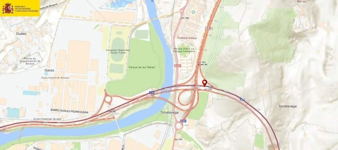 Para llegar al mencionado desvío, los vehículos cuyo origen sea Bilbao/Vargas se desviarán a través de la salida 228 de la A-8 (hacia Palencia), y una vez en la A-67 tomarán la salida 178 (Tanos), desde donde realizarán un cambio de sentido hasta la salida 180 (Ronda interior Torrelavega) y serán guiados a través de la Ronda hacia destino.