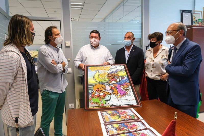 El consejero de Industria y Turismo, Javier López Marcano, ha presentado el cartel del evento junto con los organizadores del mismo, Pedro García y Joaquín Díaz 'Tachi'.