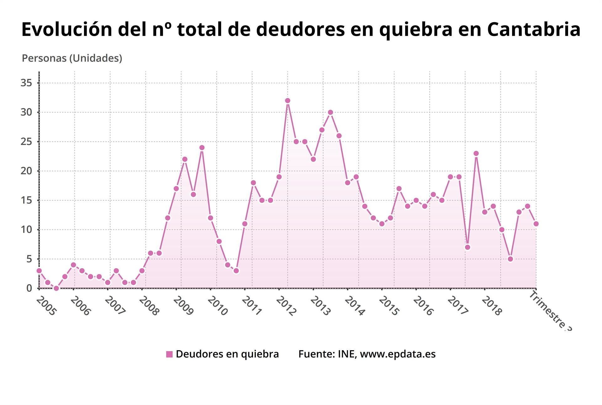 Las familias y empresas que se declararon en concurso de acreedores (suspensión de pagos y quiebras) ante la imposibilidad de afrontar sus pagos y deudas sumaron un total de once en Cantabria en el tercer trimestre del año, una más que en idéntico periodo de 2018 (+10%), según la Estadística de Procedimiento Concursal del Instituto Nacional de Estadística (INE) publicada este miércoles.
