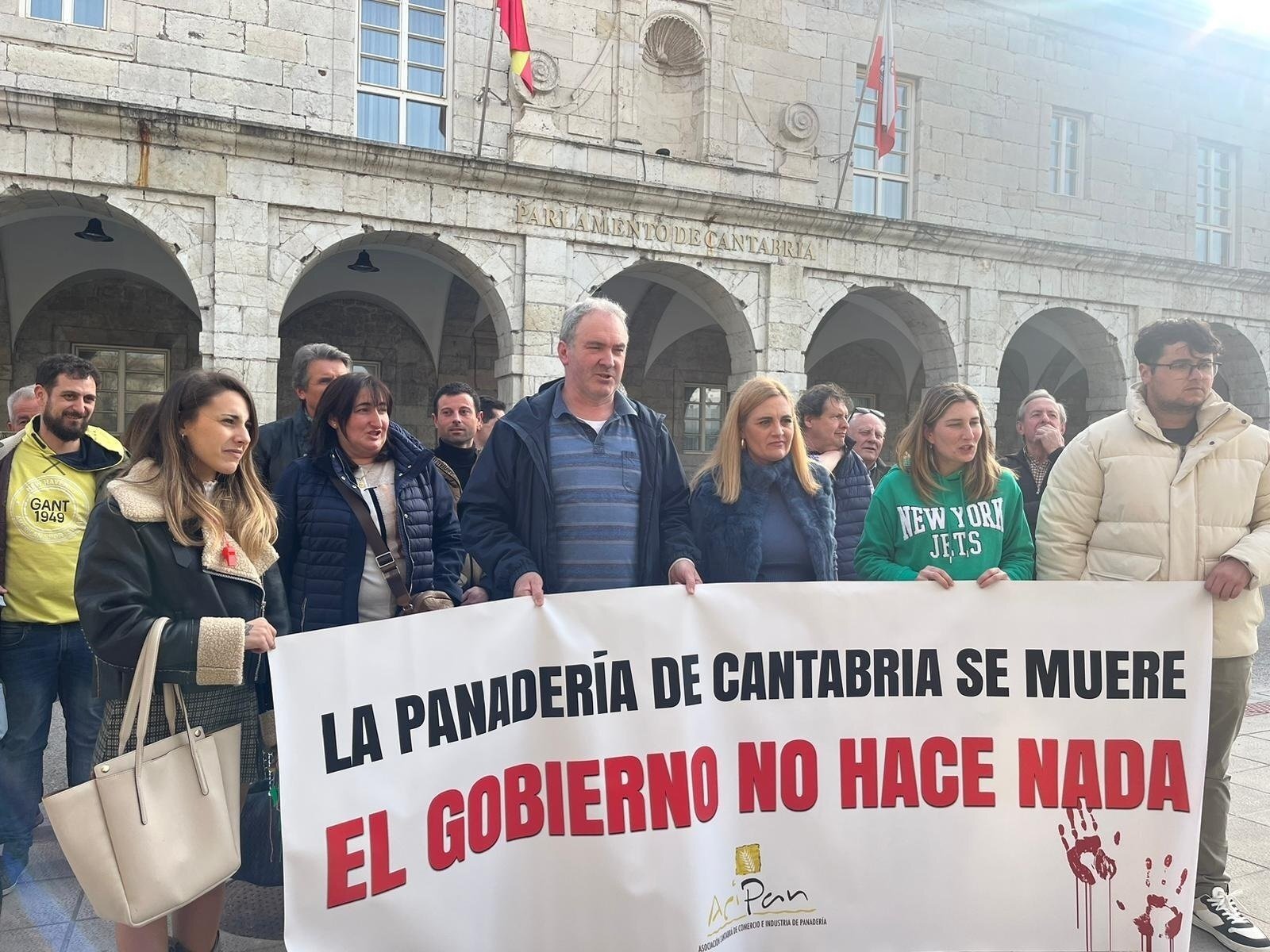 Los panaderos de Cantabria se han vuelto a concentrar este lunes frente al Parlamento para pedir al Gobierno que se concreten las subvenciones de 1,2 millones de euros que el consejero de Industria, Javier López Marcano, anunció en el pasado Pleno del 13 de febrero que se iban a repartir entre los 200 negocios de panadería y pastelería artesana de la comunidad para paliar el incremento del coste energético, con 6.000 euros a cada una.