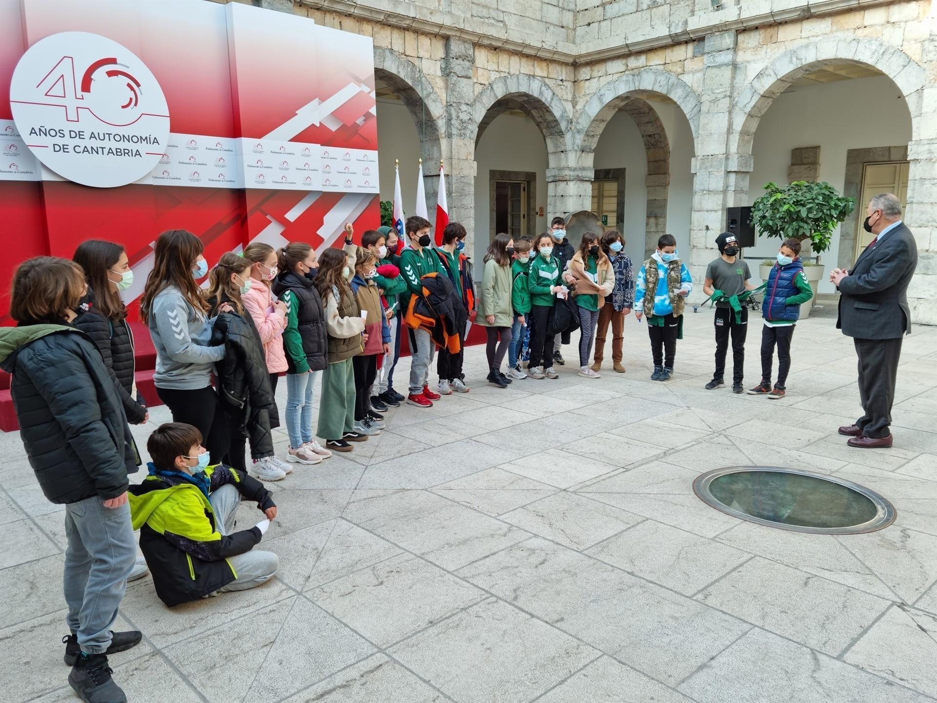 El presidente de la institución, Joaquín Gómez, ha recibido al primer grupo de veinticinco alumnos de sexto de Primaria del colegio Verdemar de Santander.