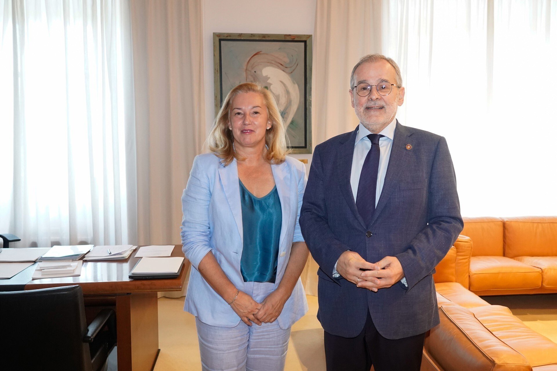 La presidenta del Parlamento, María José González Revuelta, y el rector de la Universidad de Cantabria (UC), Ángel Pazos, han mantenido esta mañana un encuentro en el que han analizado la renovación del acuerdo de colaboración que mantienen ambas instituciones.
