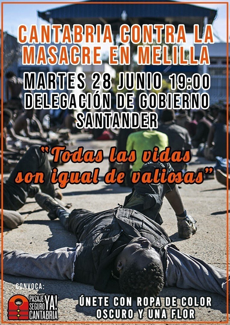 La protesta, a las 19.00 horas frente a la sede de la Delegación del Gobierno en Cantabria, pretende condenar las "indignas declaraciones" del presidente del Gobierno, Pedro Sánchez, que en su opinión "criminalizan a las personas migrantes que mueren desangradas y por asfixia, y ensalzan a quienes las masacran".