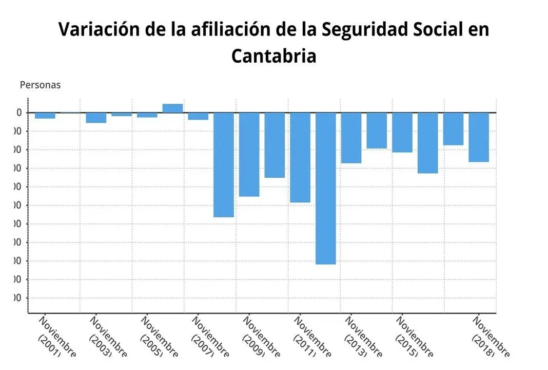 En los dos años anteriores, la afiliación también bajó en noviembre, aunque en menor cantidad. Así, en 2016 se redujo en 32.832 personas y en 2017, en 12.773 cotizantes. Por contra, en 2015 y 2014 se registraron aumentos después de un periodo (2008-2013) de fuertes descensos de la ocupación.