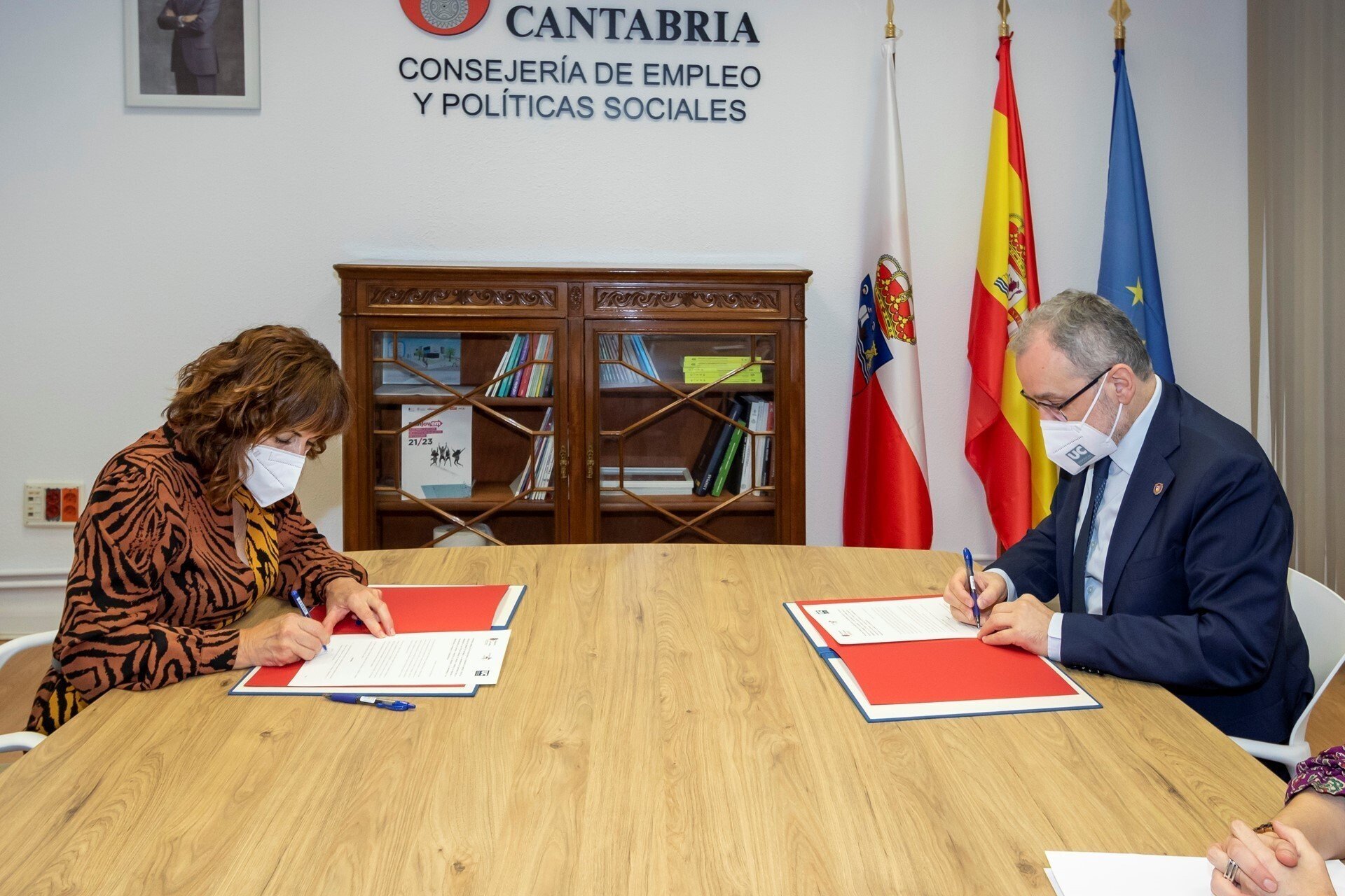 La consejera de Empleo y Políticas Sociales, Ana Belén Álvarez, y el rector de la Universidad de Cantabria (UC), Ángel Pazos, han firmado este lunes un protocolo de colaboración para la promoción, divulgación y planificación de sendos títulos propios de postgrado de Máster y Experto en Dirección y Planificación de Centros y Servicios de Atención a la Dependencia y en Protección a la Infancia y la Adolescencia.