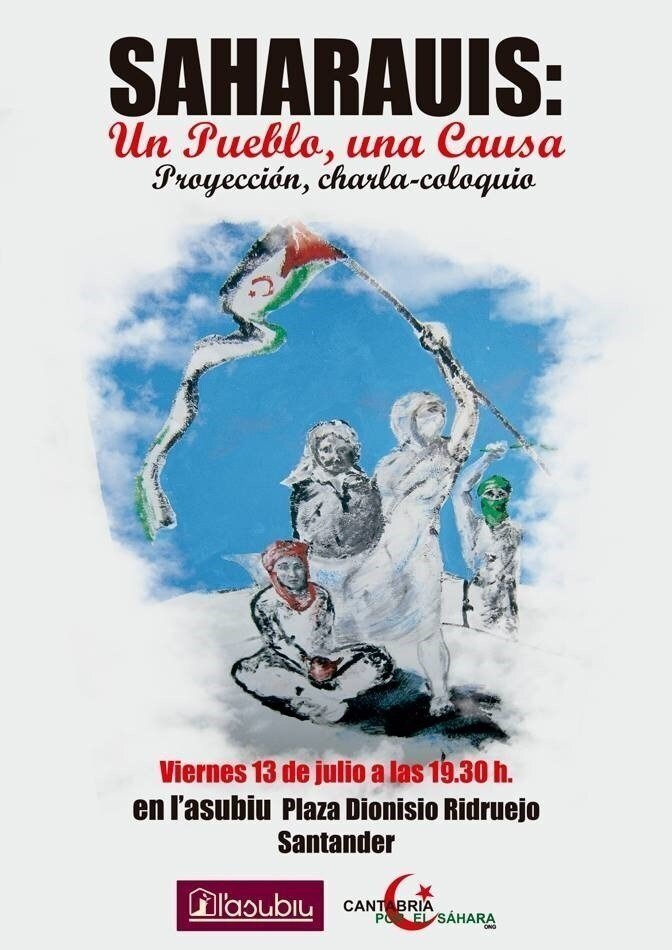 'Saharauis: Un pueblo, una causa' es el título de la charla-coloquio que este viernes, 13 de julio, a las 19.30 horas, impartirá Gabriel Herrería, presidente de Cantabria por el Sáhara, en el espacio socio-cultural L'Asubiu, ubicado en la Plaza Dionisio Ridruejo (La Plazoleta de Marqués de la Hermida) de Santander.