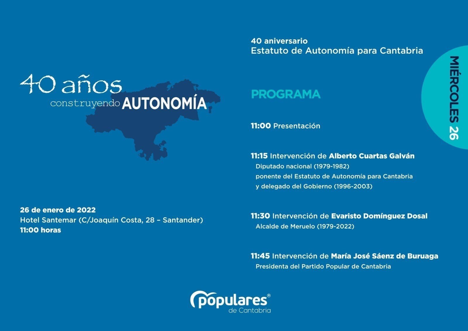 La jornada comenzará a las 11.00 horas en el Hotel Santemar con una presentación a cargo de la secretaria general del partido, María José González Revuelta, que dará paso a la intervención de Alberto Cuartas, diputado nacional entre 1979 y 1982 y una de las personas que mejor conoce el proceso autonómico, puesto que fue uno de los ponentes del Estatuto de Autonomía, aprobado por el Congreso de los Diputados en diciembre de 1981 y que entró en vigor el 1 de febrero de 1982.
