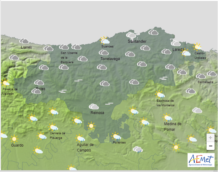La Agencia Estatal de Meteorología (AEMET) prevé en Cantabria para este miércoles, día 1, intervalos de nubes bajas de madrugada con alguna lluvia débil o llovizna, sobre todo en la mitad occidental, aumentando gradualmente a nuboso o cubierto por la tarde con nubosidad de evolución diurna y chubascos dispersos.