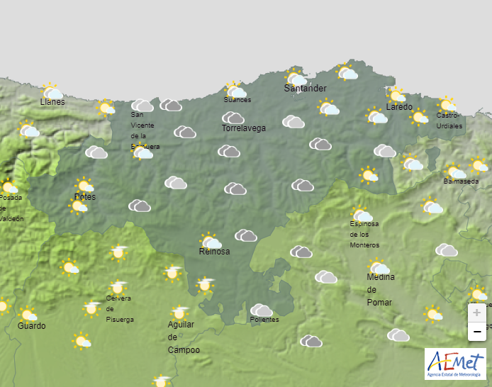 La Agencia Estatal de Meteorología (AEMET) prevé en Cantabria para este jueves, día 26, predominio de cielos nubosos sin descartar precipitaciones débiles por la mañana en el tercio oriental, más probables cuanto más al este, y abriéndose claros por la tarde.