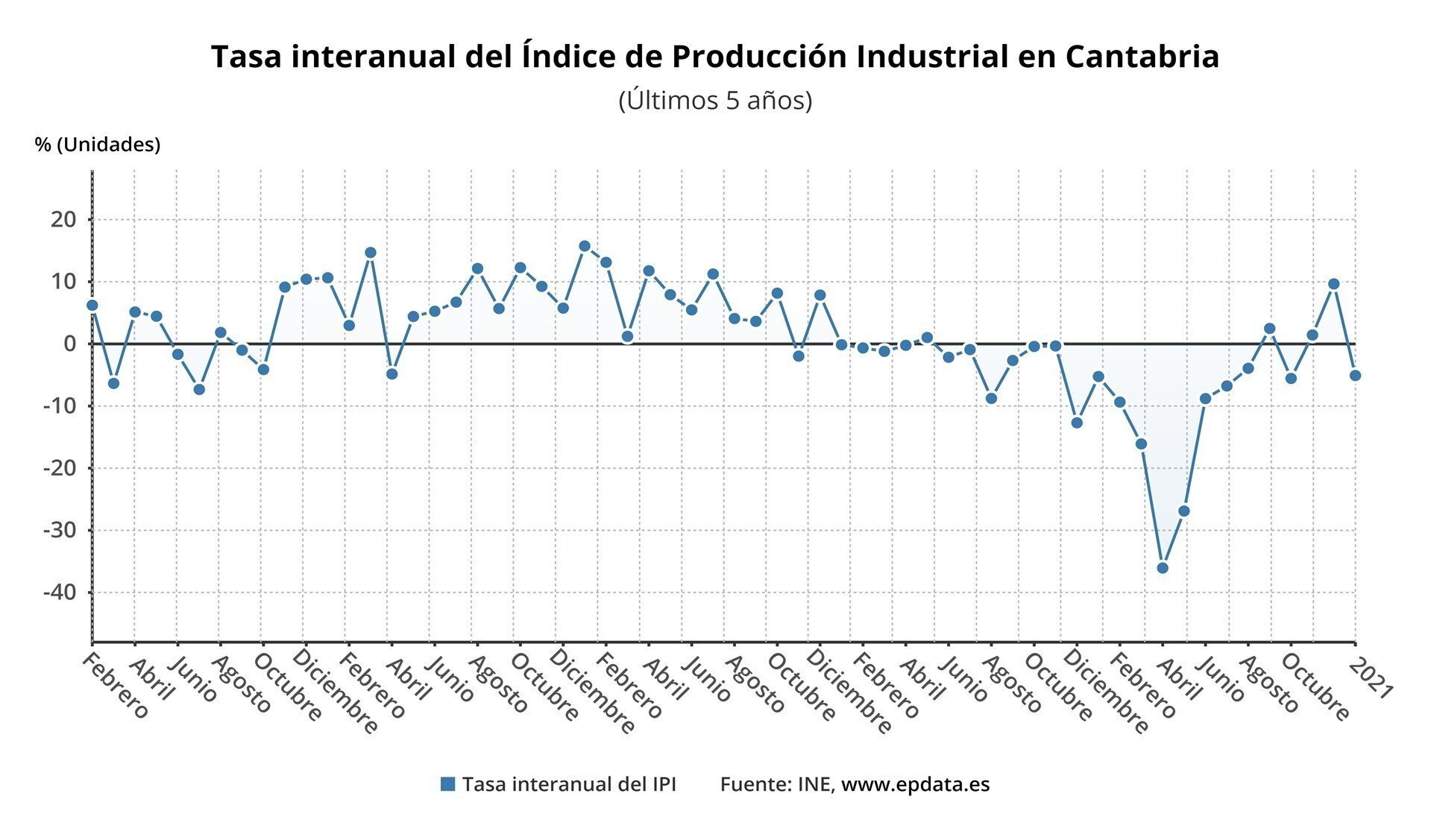 La producción industrial comenzó el año con un retroceso en Cantabria del -5,1%, según ha informado este lunes el Instituto Nacional de Estadística (INE).