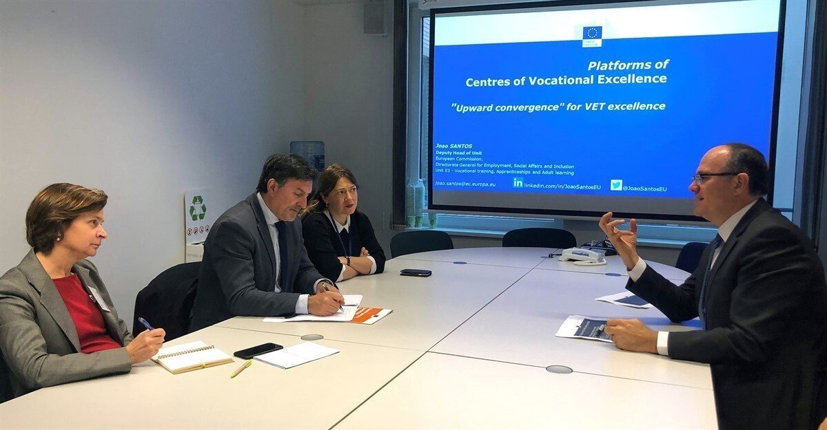 Así lo ha afirmado el consejero de Educación, Cultura y Deporte, Francisco Fernández Mañanes, quien ha mantenido hoy un encuentro en Bruselas con el responsable de la Unidad de Formación Profesional de la Comisión Europea, Joao Santos, para conocer de primera mano la Estrategia 2030 que, sobre este ámbito de formación, está diseñando este organismo europeo.