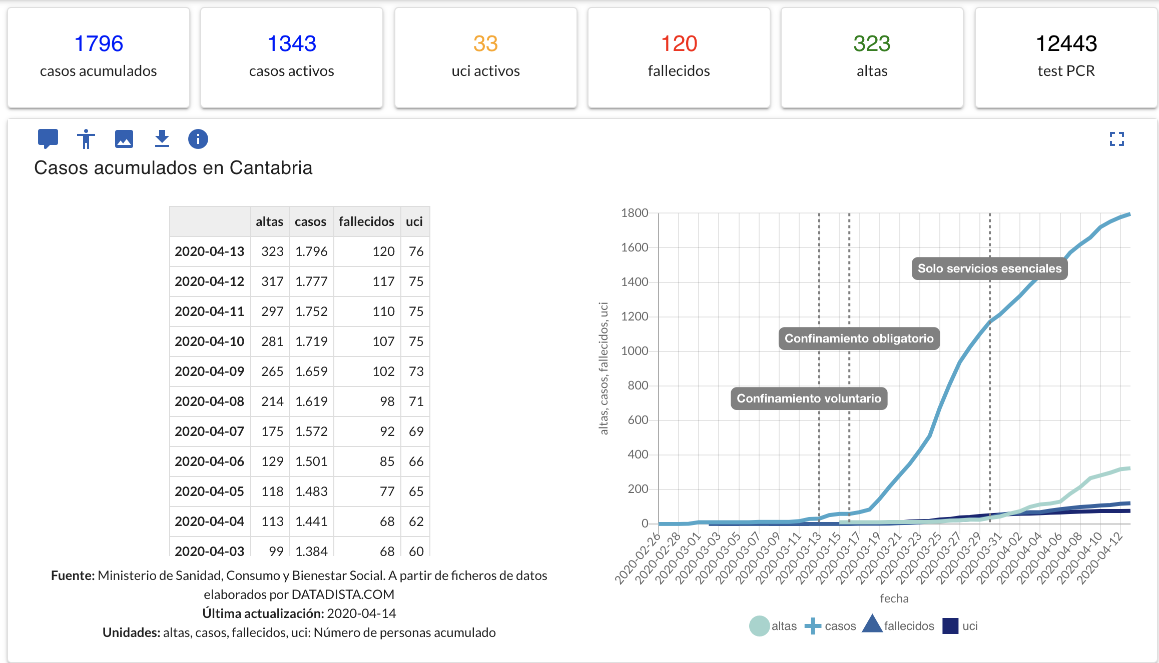 Cantabria registra 1.353 casos activos, 323 curados y 120 fallecidos | Datos 14A