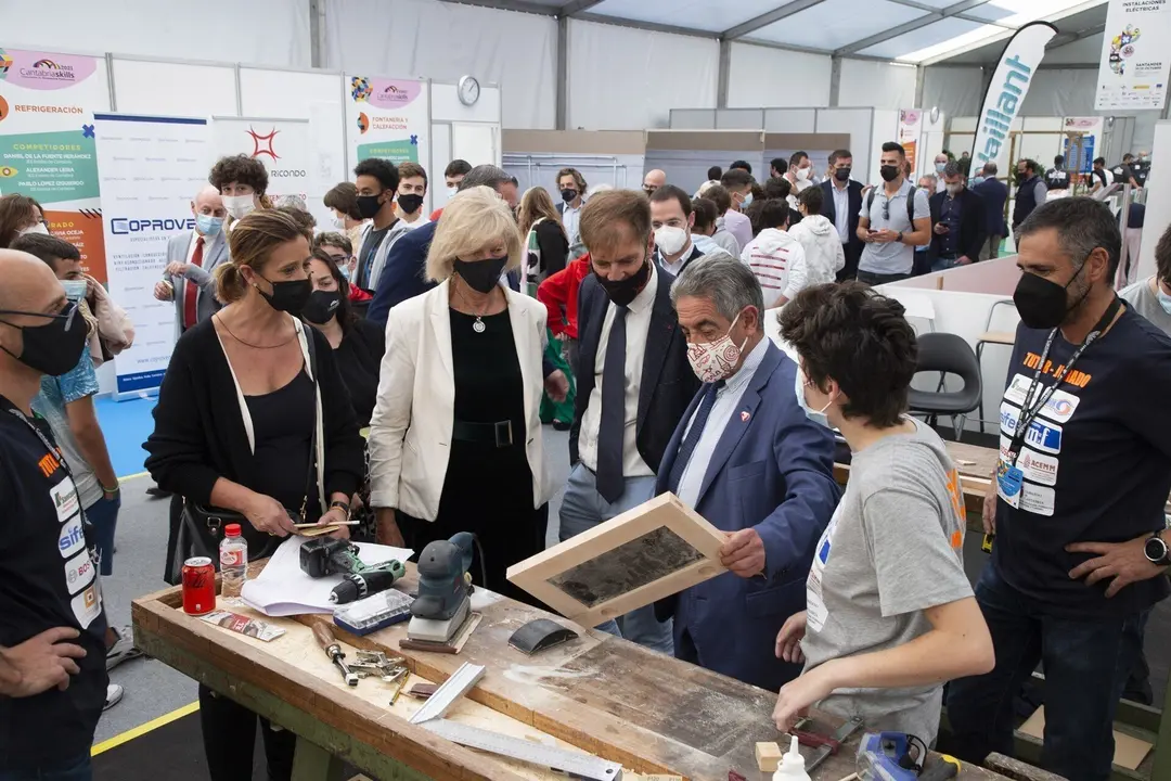 Tras realizar un recorrido por las diferentes 'skills' o modalidades competitivas, el presidente ha animado a la juventud a especializarse en oficios que se estudian en Cantabria como calderería, soldadura, albañilería, automoción o carpintería, profesiones en las que "se colocan todos inmediatamente".