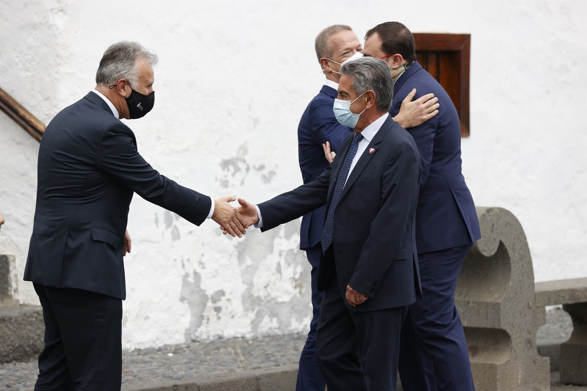 El homenaje se ha producido tras la reunión, por la mañana, de la Comisión Mixta para la Reconstrucción, Recuperación y Apoyo a la isla de La Palma y en vísperas de la celebración, este domingo, de la Conferencia de Presidentes en Los Llanos de Aridane, reunión que estaba prevista inicialmente para el pasado 25 de febrero, pero tuvo que posponerse por la invasión rusa de Ucrania.