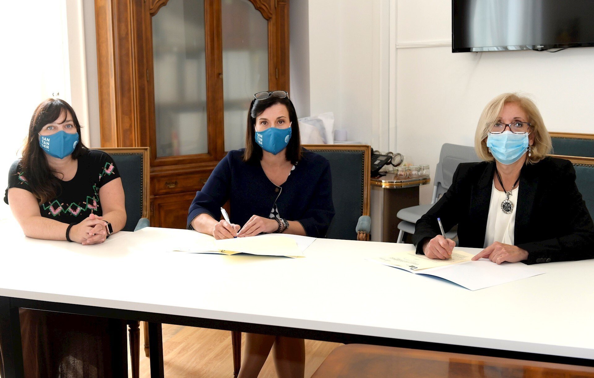 La alcaldesa de Santander, Gema Igual, y la directora de la UNED en Cantabria, Ana Rosa Martín, han firmado, en presencia de la concejala de Educación, Noemí Méndez, el acuerdo por el que el Consistorio reforzará la colaboración que mantiene con la institución académica, a la que se suma además de la aportación anual la cesión de la sede donde se encuentra el centro.