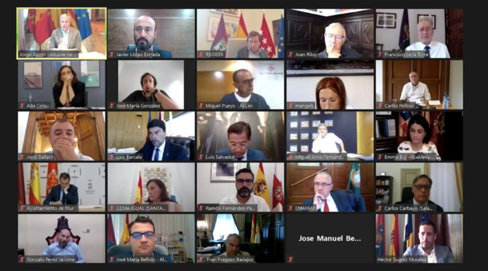 El encuentro telemático ha dado continuidad al del pasado 7 de agosto, convocado por el alcalde de Zaragoza y del que surge una declaración conjunta rubricada por los regidores de Cádiz, Granada, Lleida, Madrid, Murcia, Pontevedra, Reus, Santa Cruz de Tenerife, Valencia y Zaragoza.