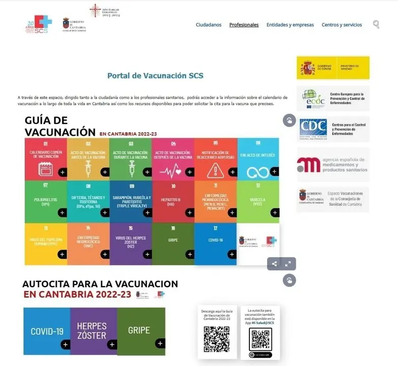 Alojado en la web del SCS (https://www.scsalud.es/portal-de-vacunas), el portal incluye desde un apartado de autocita para vacunas como la del COVID-19, herpes zóster o gripe, cuando está activa la campaña de vacunación, hasta guías interactivas de uso y recomendaciones sobre las vacunas incluidas ahora mismo en el calendario de vacunación de Cantabria.