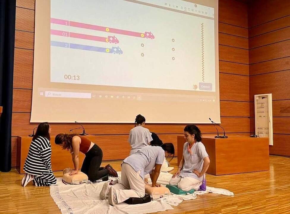 Además, en este mismo centro y coordinados por profesionales del hospital, varios escolares han recibido una formación que comenzaba con la visualización de unos vídeos didácticos, continuaba en el Hospital de Campaña para aprender las técnicas y finalizaba con un juego interactivo como herramienta de aprendizaje. Durante la tarde, el programa se completa con Talleres de RCP dirigidos a docentes en el Hospital Virtual.
