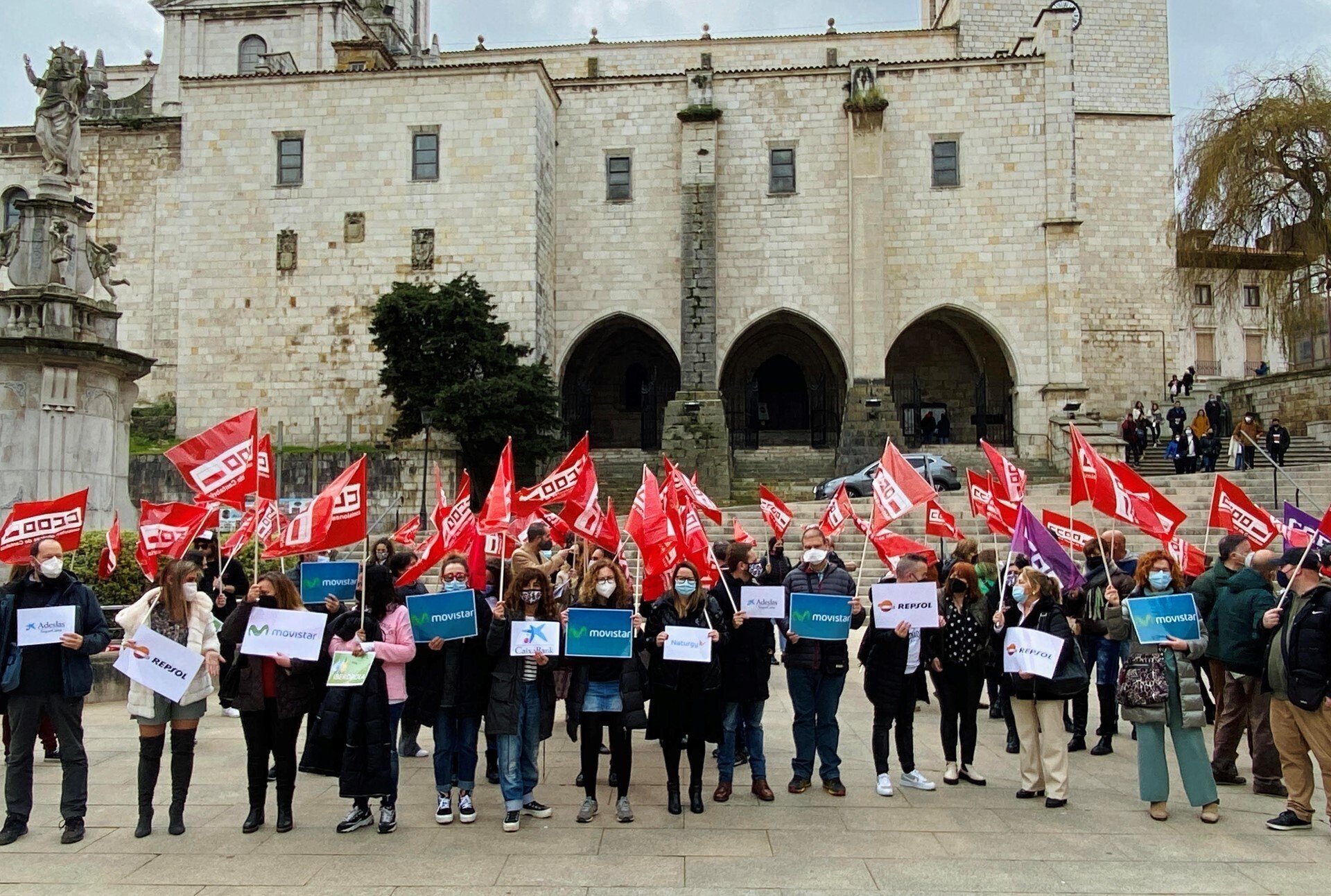 Trabajadores del sector del 'contact center' han vuelto a concentrarse este viernes en Santander, convocados por CCOO, para reclamar la firma de un nuevo convenio colectivo que sustituya al actual, que lleva "dos años en ultraactividad".