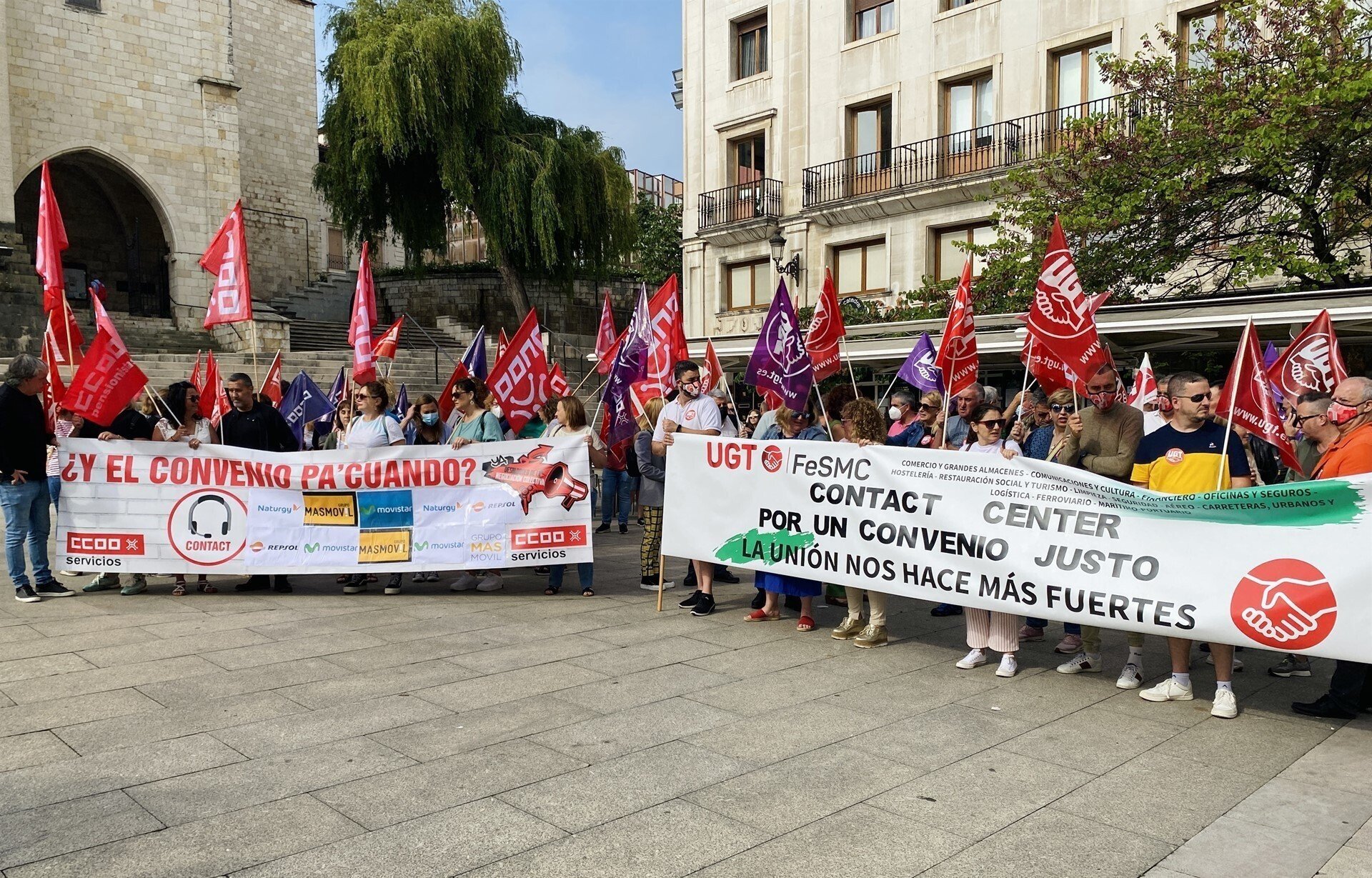 El sector cántabro del 'contact center' ha protagonizado este lunes su segundo día de huelga general de 24 horas convocada por las federaciones de servicios de UGT y de CCOO para exigir un convenio colectivo "digno" que "acabe con la precariedad laboral y con salarios congelados desde el año 2019".