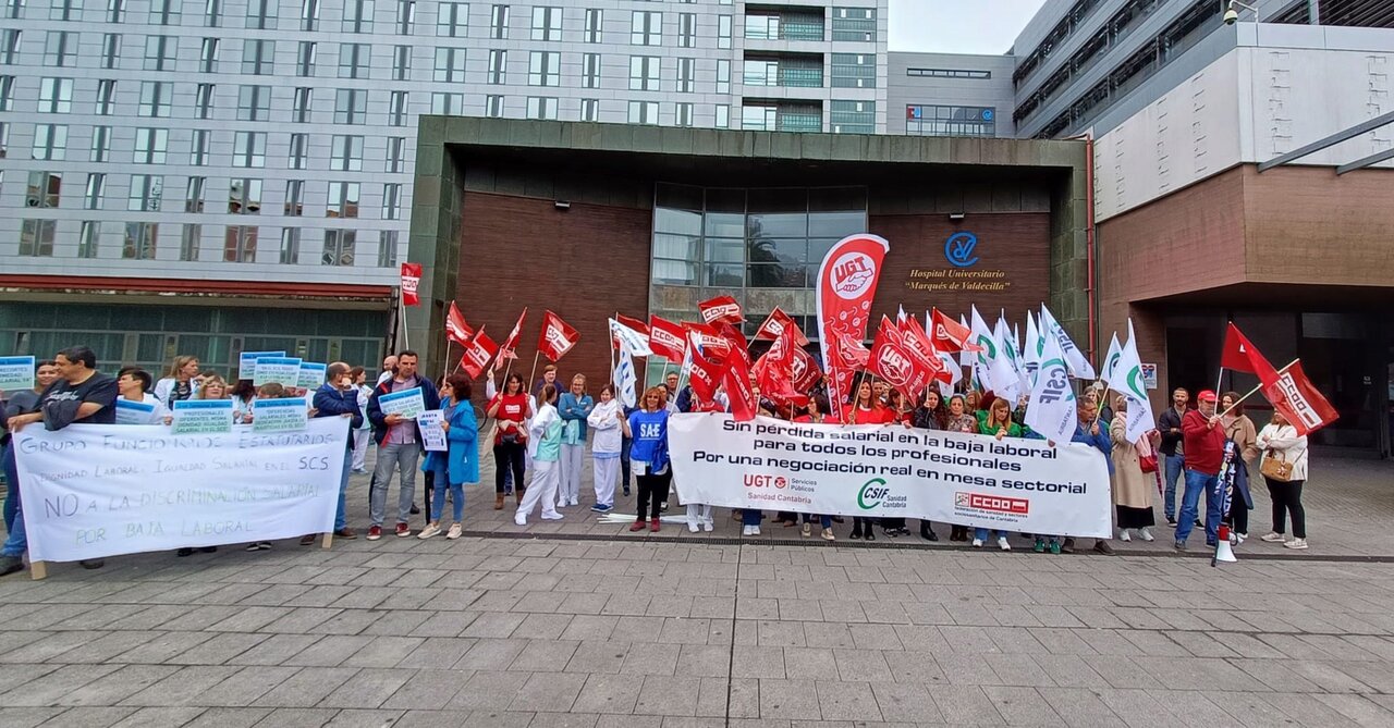 Las organizaciones sindicales CCOO, CSIF, GFE sin siglas, USAE y UGT se han vuelto a concentrar este lunes a las puertas del edificio 2 de Noviembre del Hospital Valdecilla para protestar por la "injusta y déspota gestión" de la sanidad que, a su juicio, está realizando la Consejería de Salud (PP), y han avisado de que "recrudecerán" el calendario de movilizaciones si ésta no pone fecha a una mesa sectorial.